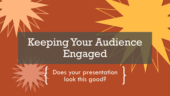 You or your company's brand should extend beyond just a logo and letterhead. Every time your information is presented, your brand should be apparent.I will create a set of PowerPoint slide masters that can be used again and again to create engaging presentations that will hold the audience's attention. Every set of masters I create will come with a uniquely designed graphic theme that will flow throughout the presentation.
